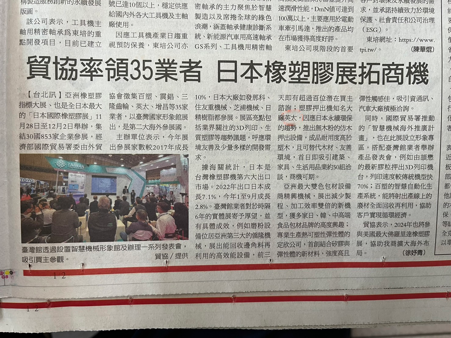 무역협회가 35개 업체를 이끌고 일본 고무 및 플라스틱 전시회에서 비즈니스 기회를 확대합니다 - https://money.udn.com/money/story/5639/7625874?from=edn_search_result